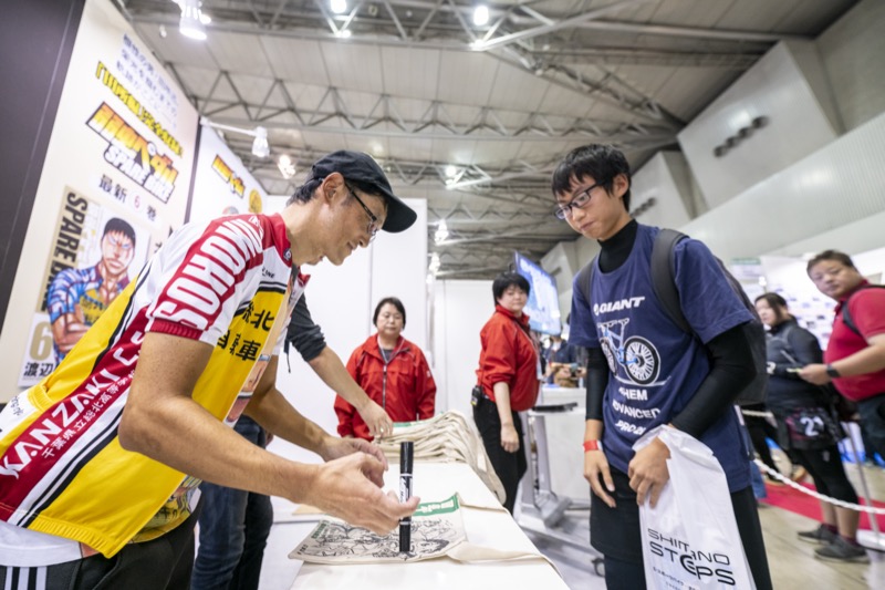 コミックス累計発行部数3,200万部を超える大人気ロードレースコミック「弱虫ペダル」とサイクルモードのコラボレーションが今年も実現!渡辺先生が自身の自転車愛を語り尽くすトークショーと、チャリティサコッシュのサイン会を会場内で実施します。